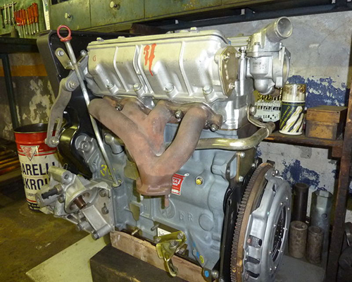 Un'altra fase del montaggio del motore nel vano anteriore. |